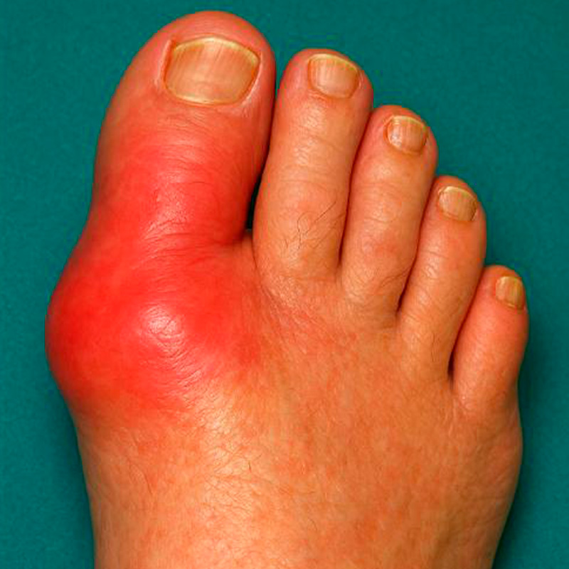 Inflamação dolorosa nas articulações causada pelo excesso de ácido úrico no organismo.