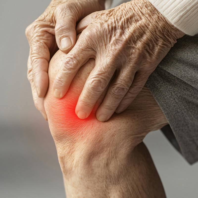 Desgaste da cartilagem das articulações, comum com o envelhecimento, que gera dor e limitação de movimentos.